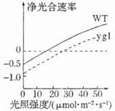 (2)光照强度逐渐增加达到2 000(μmol·m⁻²·s⁻¹)时,ygl的净光合速率较WT更高,但两者净光合速率都不再随光照强度的增加而增加,比较两者的光饱和点,可得ygl_______WT(填“高于”“低于”或“等于”)。ygl有较高的光补偿点,可能的原因是叶绿素含量较低和_______。