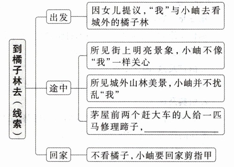 3.(梳理线索)小岫在“到橘子林去”的路途中,心理有哪些变化?请简要梳理。