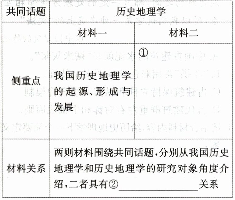 解析 下定义必须抓住被定义事物的基本属性和本质特征,格式为被定义概念 = 特征 + 属概念(上位概念)。根据材料一“历史地理学则有自己独立的学科体系和理论,是现代地理学的一部分”,可知历史地理学的基本属性是一门现代地理学学科,或者说是现代地理学的分支学科。根据材料二“历史地理学在以空间为研究对象的地理学的庞大家族中,具有独特性,即空间过程和时间过程相结合”,概括其本质特征,即具有时空结合的特点。根据材料一的研究性质和材料二第二段,以及对长江三峡等地貌和武汉等城市的形成和演变,可知历史地理学的研究对象是自然和人文地理现象的“产生、形成及其演化的过程”,研究目的是“寻找……原因”“探寻其规律”。筛选并整合以上信息,根据下定义多采用判断单句的格式要求,即可概括出准确、完整的答案。
