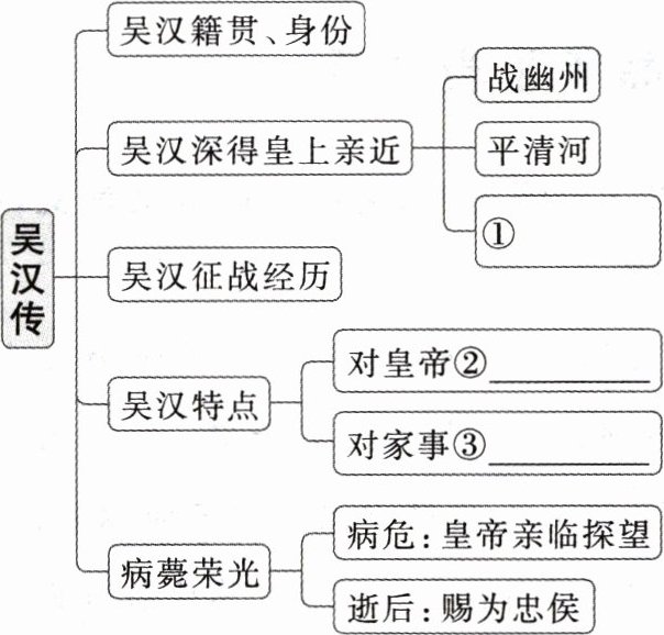 在按照纪传体阅读方法、步骤阅读全文后,填出下面导图中的空缺部分。