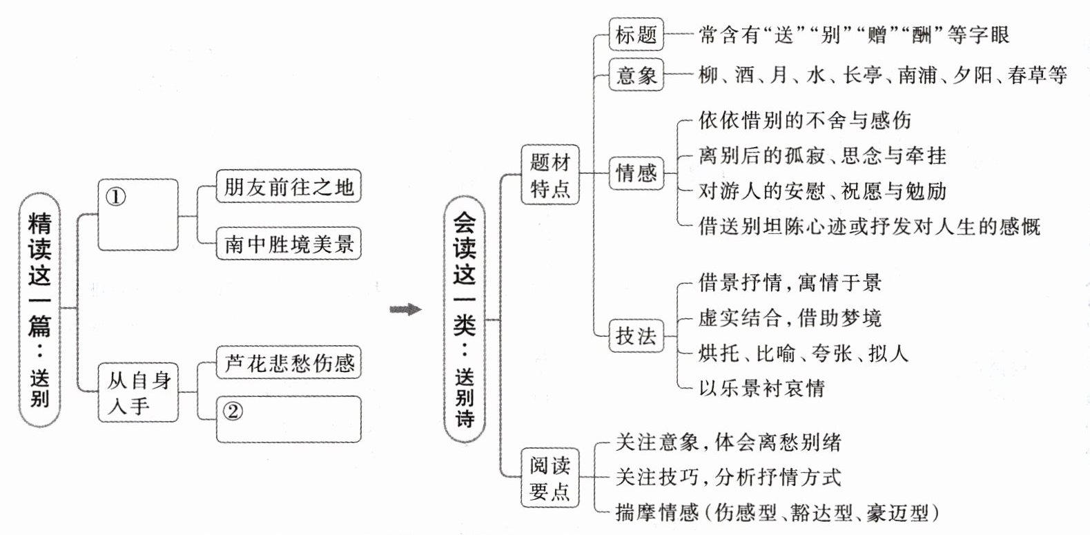 下面是本诗的思路导图,请结合文本填出空缺内容。