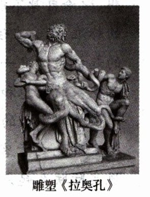 C.雕塑《拉奥孔》与史诗记载的不同主要体现在三处:一是拉奥孔的表情,二是大蛇缠身的部位,三是人物穿衣与否。