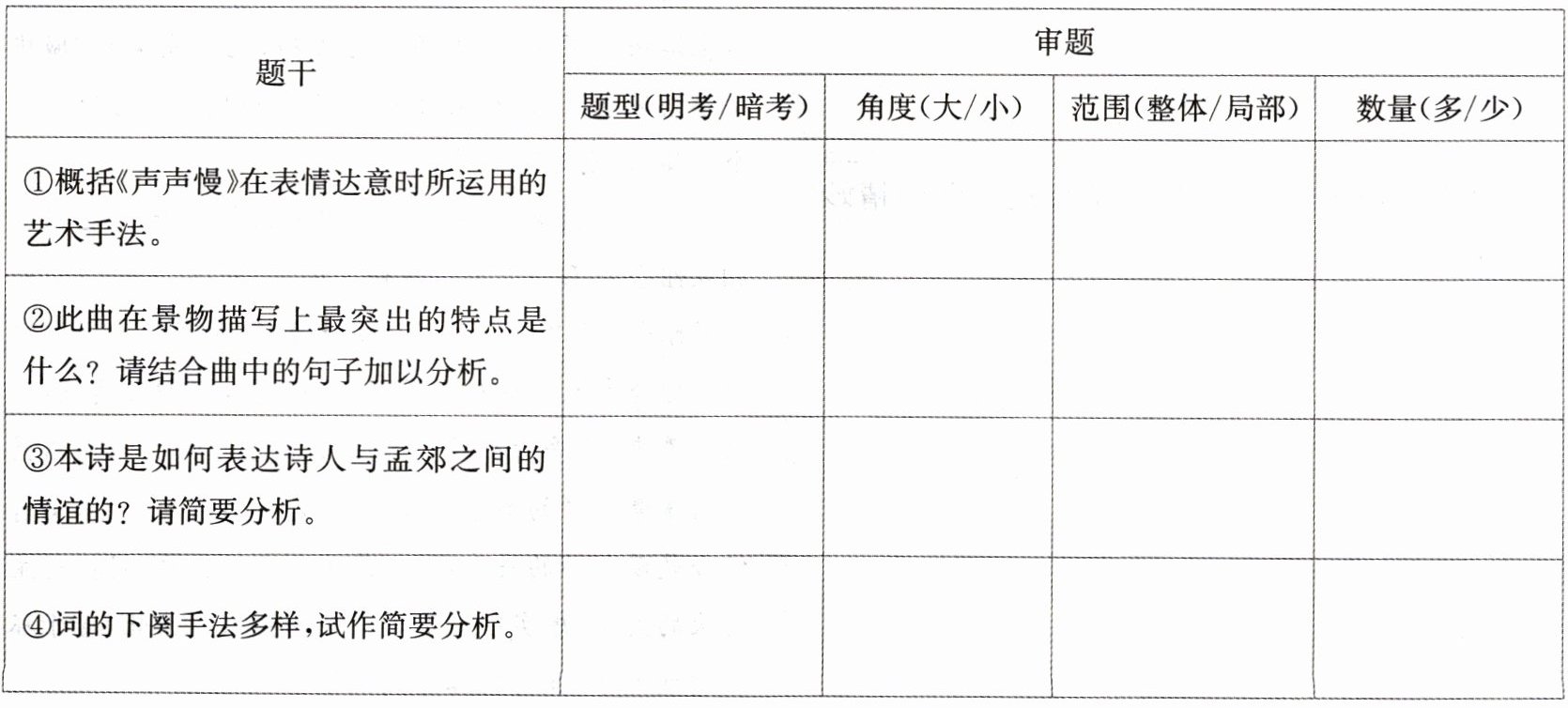 请根据下面的题干要求,填写表格内容,写出审题背后隐含的信息。