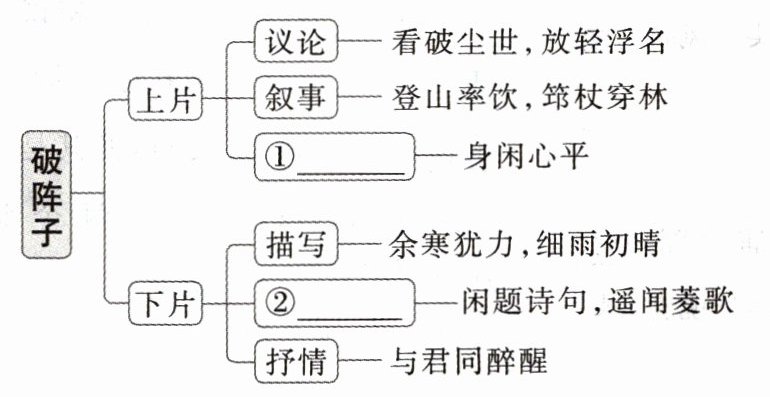 1. 下面是本词的思路导图,请结合文本填出空缺内容。2. 闲适诗(见学案61“活动二”)