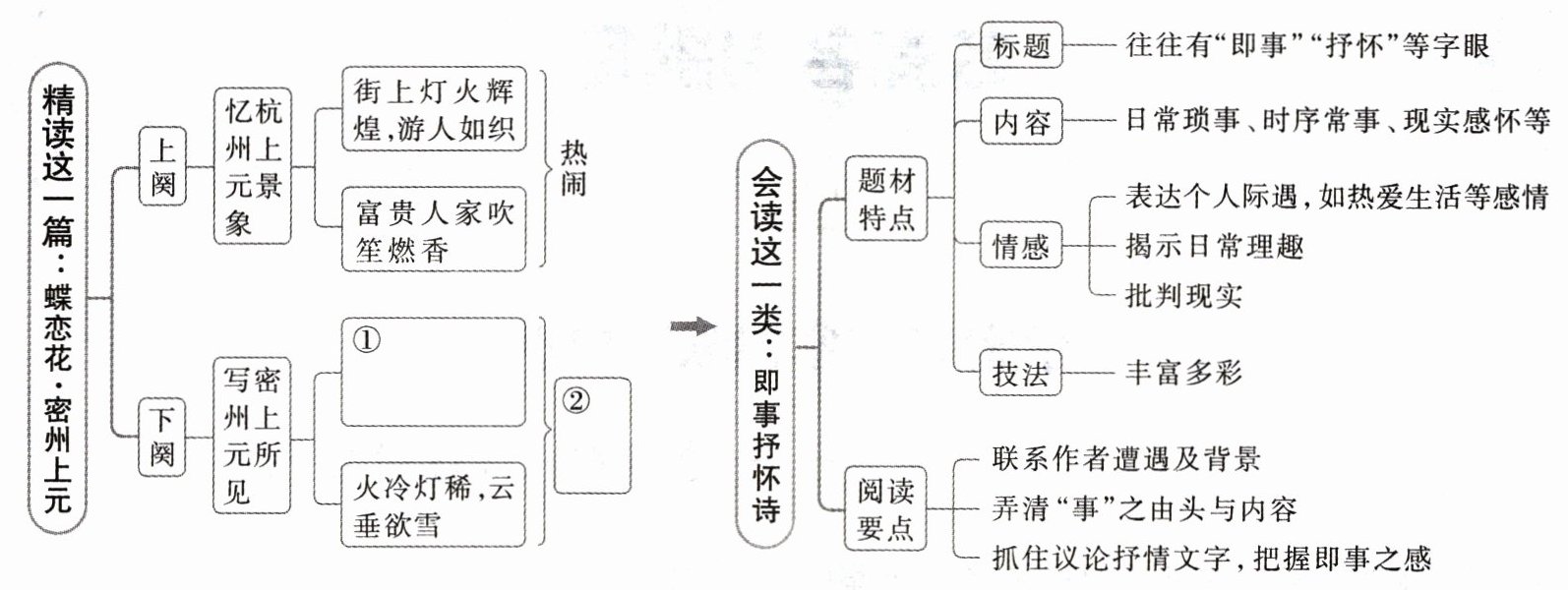 下面是本词的思路导图,请结合文本填出空缺内容。