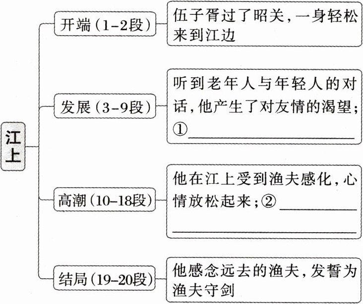 3.舟行江上,子胥的思绪随着他在江上的所见所感而逐步生发展开。请结合文中相关部分简要分析。(6分)