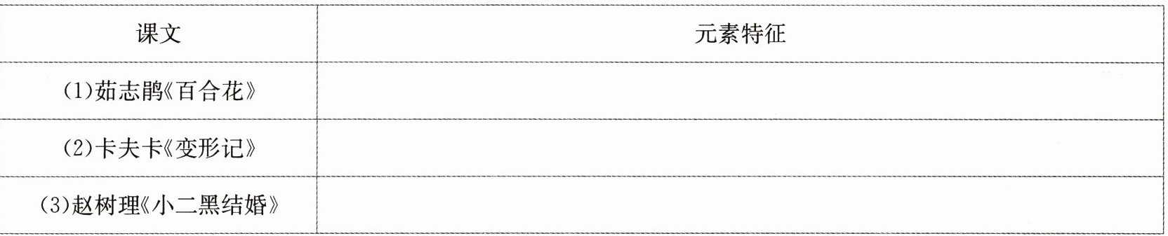 【理解小练 1】 下面教材中的小说分别体现了哪个(些)元素特征?