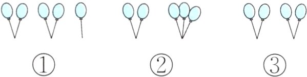 (1)下面三幅图中,能表示$5\div2=2$(束)$\cdots\cdots1$(只)的是( )。