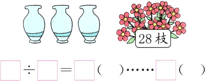 $28\div3 = 9(\text{枝})\cdots\cdots1(\text{枝})$