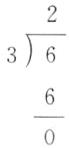$\begin{array}{r}2 \\3\enclose{longdiv}{6} \\\underline{6} \\0\end{array}$