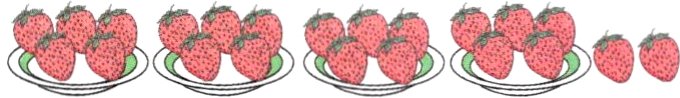 (1) $34\div4 = 8(个)\cdots\cdots2(个)$