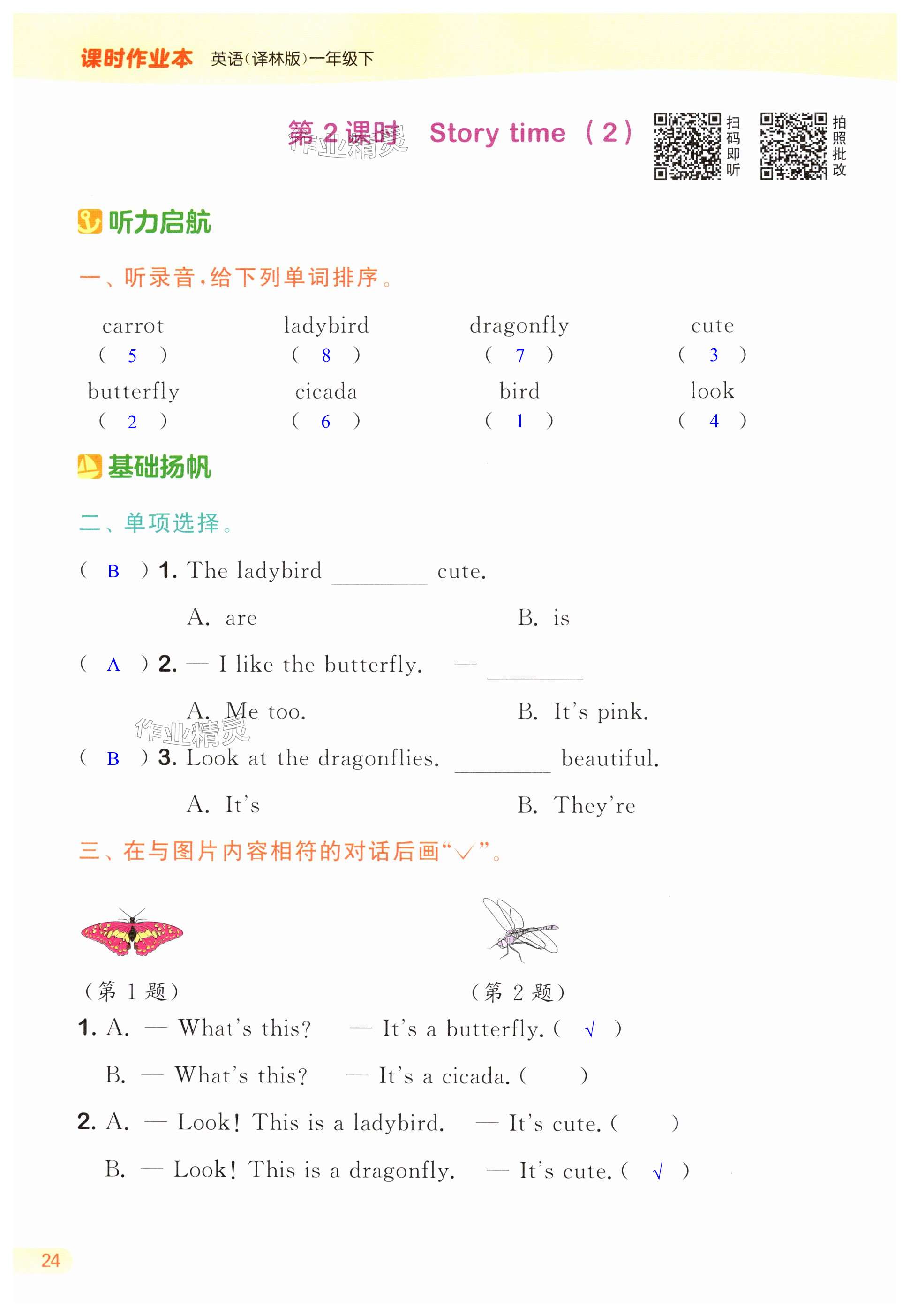 注:目前有些书本章节名称可能整理的还不是很完善,但都是按照顺序排列的,请同学们按照顺序仔细查找。练习册 2025年通城学典课时作业本一年级英语下册译林版 答案主要是用来给同学们做完题方便对答案用的,请勿直接抄袭。