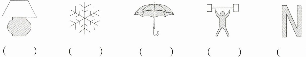 1. 下面哪些图形是轴对称图形? 是的画“√”,不是的画“×”。(5分)