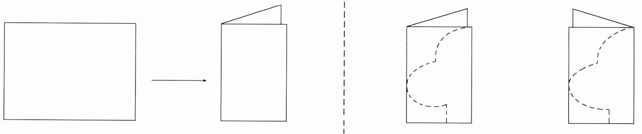 3. 如图,把一张长方形的纸先对折,再沿虚线剪,然后把剪下来的图形展开,能得到一棵完整的“树”的是哪一个? 圈一圈。(3分)