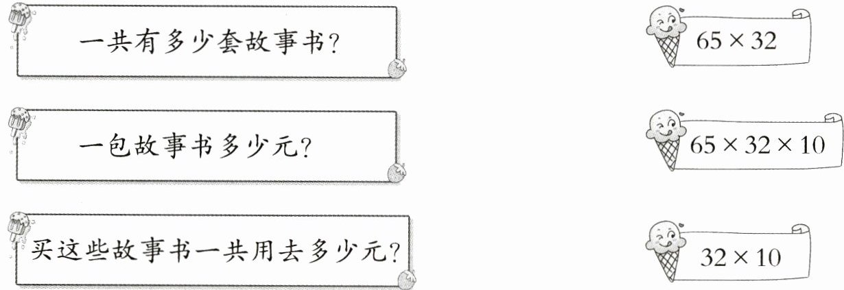 学校图书室购进 10 包故事书,每包 32 套,每套 65 元。