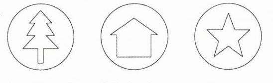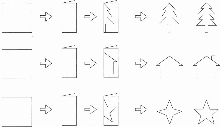 1. 如图,把正方形纸对折,在折痕的一侧画出图形,用剪刀沿线剪下来,然后展开,得到的分别是哪个图案?圈一圈。(6 分)