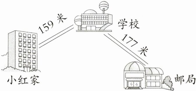 5. 小红从家出发,经过学校到邮局,一共走了 8 分钟。小红平均每分钟走多少米? (4 分)