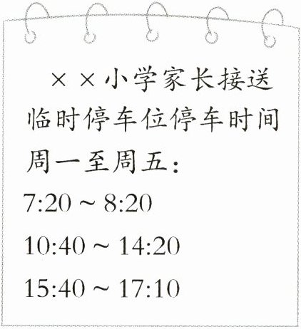 (1)这所学校门口早上允许临时停车的时长是( )。