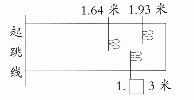 6. 实验小学运动会上 3 名运动员的跳远情况如图,方框里可填( )。