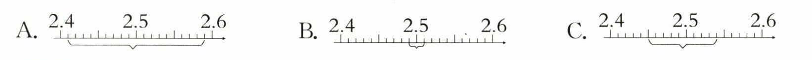 7. 一个两位小数,精确到十分位是 2.5,这个两位小数的取值范围是( )。