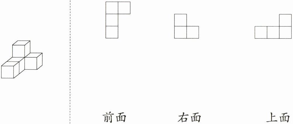 1. 从前面、右面和上面看到的图形分别是什么?(连线)(6 分)
