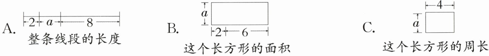 7. 新情境 数形结合 下面选项中,可以用2a + 8表示的是( )。