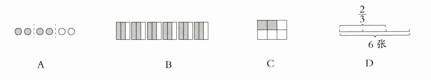 2. 新素养 几何直观 下面( )表示的不是“6 张饼的$\frac{2}{3}$”。