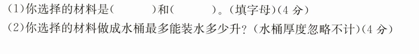 3.要制作一个能知道容积的无盖圆柱形水桶,有以下几种型号的铁皮可供搭配选择。