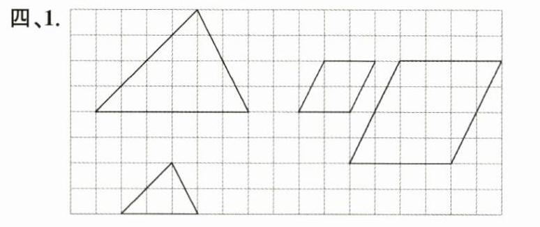 1. 先按1:2的比画出三角形缩小后的图形,再按2:1的比画出平行四边形放大后的图形。(6分)