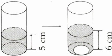 ①在一个底面内直径是8 cm的圆柱形玻璃杯中装入一定量的水,量得水面的高度是5 cm;