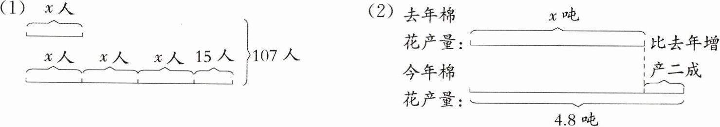 1. 工程队修一段长$x$千米的公路,前3天每天修1.3千米,剩下的要5天修完。