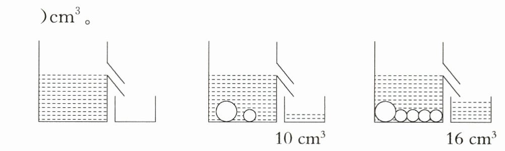 11. 辨思维 形象思维 观察下面三幅图,在装水的杯子中放入大球和小球,大球的体积是( )cm³。
