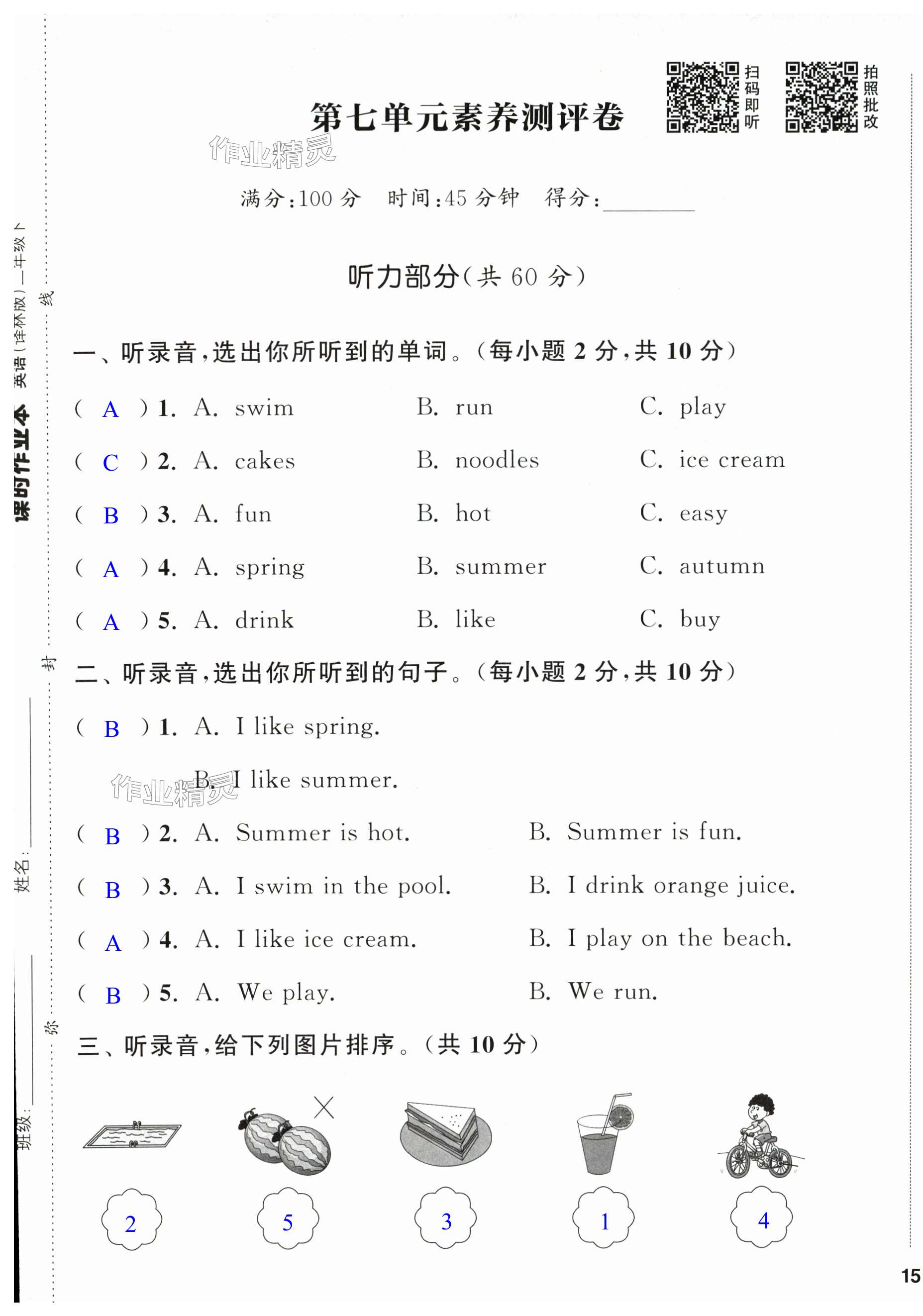 注:目前有些书本章节名称可能整理的还不是很完善,但都是按照顺序排列的,请同学们按照顺序仔细查找。练习册 2025年通城学典课时作业本二年级英语下册译林版 答案主要是用来给同学们做完题方便对答案用的,请勿直接抄袭。