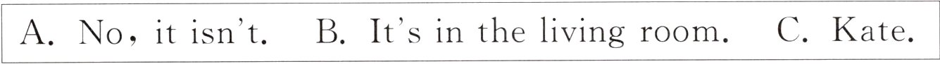 A. No,it isn’t. B. It’s in the living room. C. Kate.