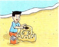 A. I play on the beach.( )