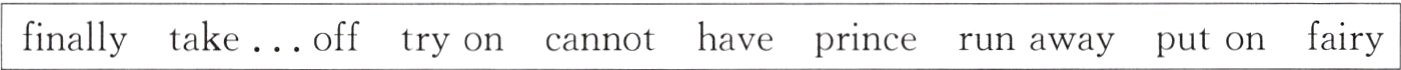 cannot; have; fairy; puts on; runs away; prince; try on; take; off; Finally