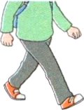 (1. likes 2. lives in 3. by plane 4. lives near 5. on foot)