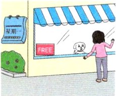 Lisa goes to an animal shelter(收容所) on Monday afternoon. She likes the dogs there. “Can I have a dog?” Lisa asks her mum and dad. “The dogs are free(免费的),” she says. “The dog food isn't free,” Dad says. “Taking care of a dog is a lot of work. You can't have a dog,” says Mum.