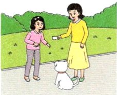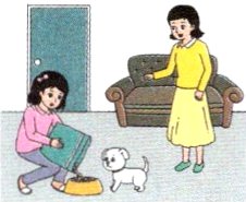 Lisa visits Mrs White and her dog, Doggy. “Taking care of a dog is a lot of work,” says Mrs White. “I don't have time for Doggy,” she says. “I can help you,” says Lisa. Lisa walks and feeds(喂食) Doggy.