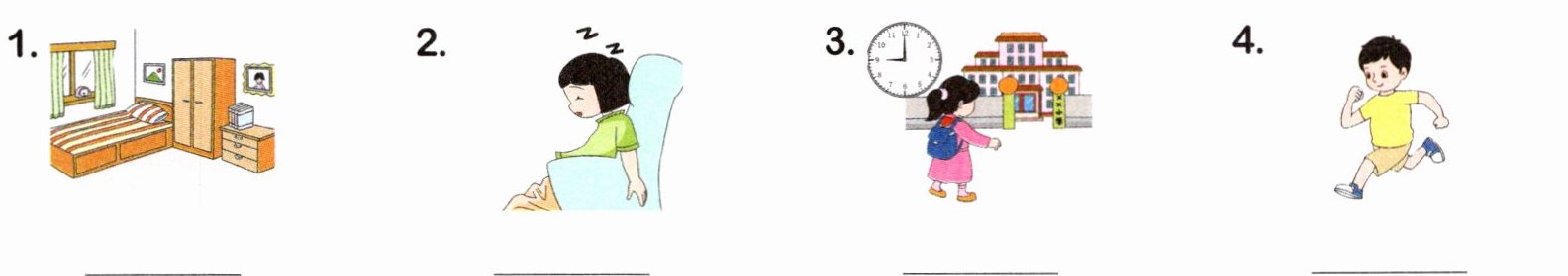 1. tidy 2. sleepy 3. late 4. fast