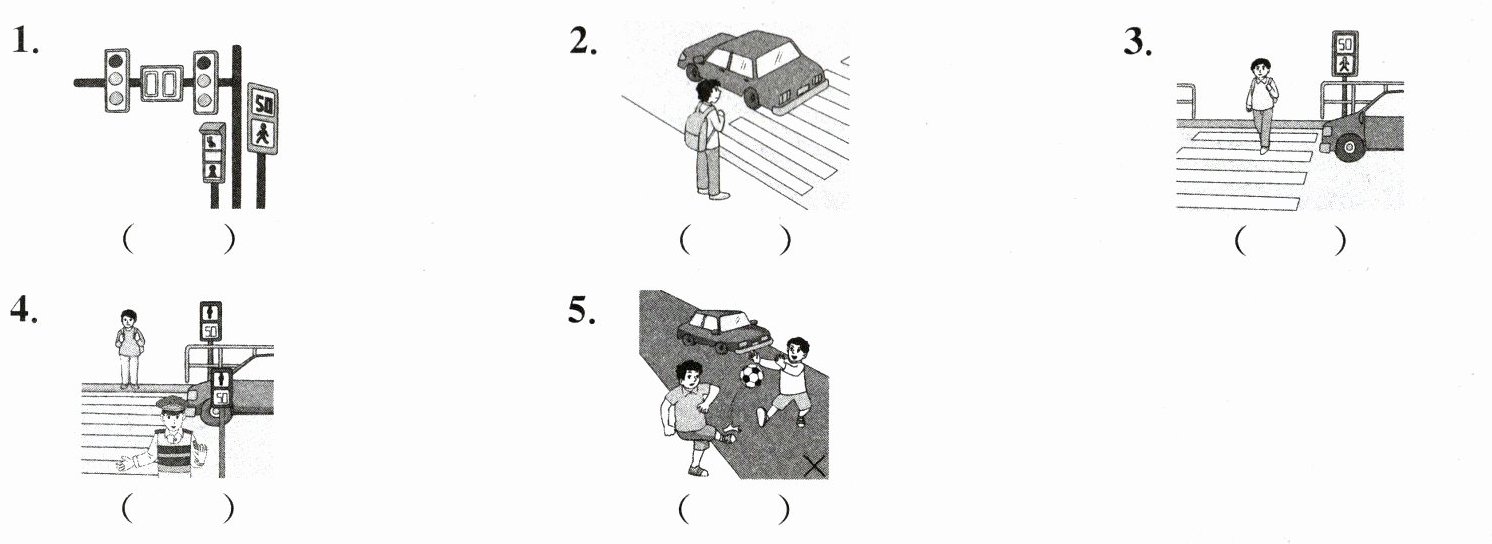 ( )5. A. They’re waiting for the bus. B. They look out for cars. C. They wait for the green man.
