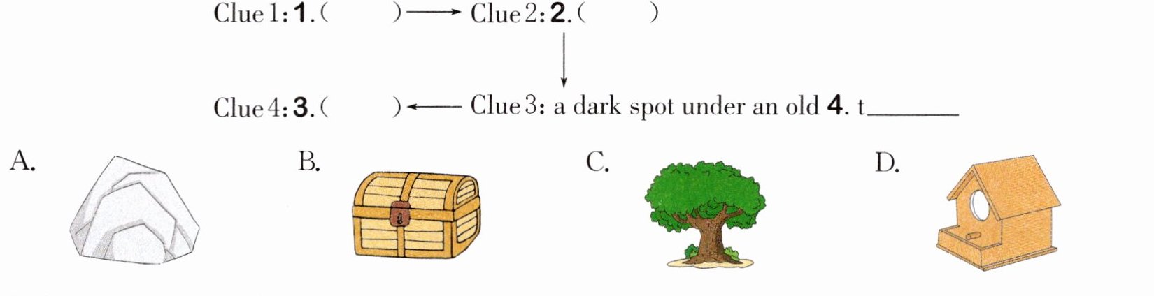 The first clue led them to a big tree. The second clue told them to find the biggest rock. They found it easily! But the third clue was difficult. It said, “Find the path where the sun doesn't shine. ” They looked around.