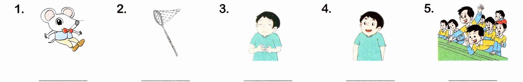 1. mouse 2. net 3. sadly 4. happily 5. cheer