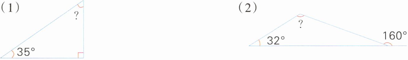 (1)180° - 90° - 35° = 55°(2)180° - 32° - (180° - 160°) = 128°