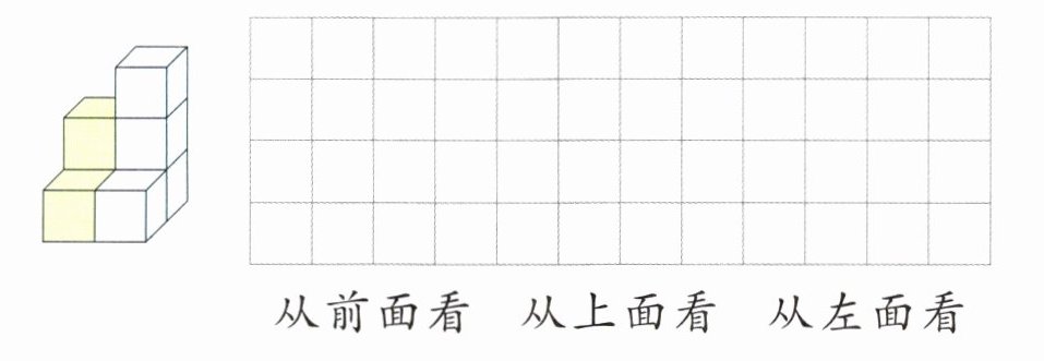 (2)站在下图磁力积木的左边,看到的图形是( )。