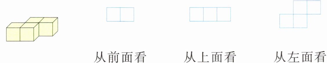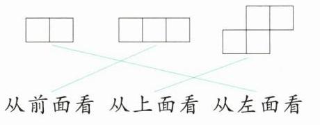 2. 苗苗用 2 块磁力积木摆成下图所示的物体,请分别画出从前面、上面和左面看到的图形。