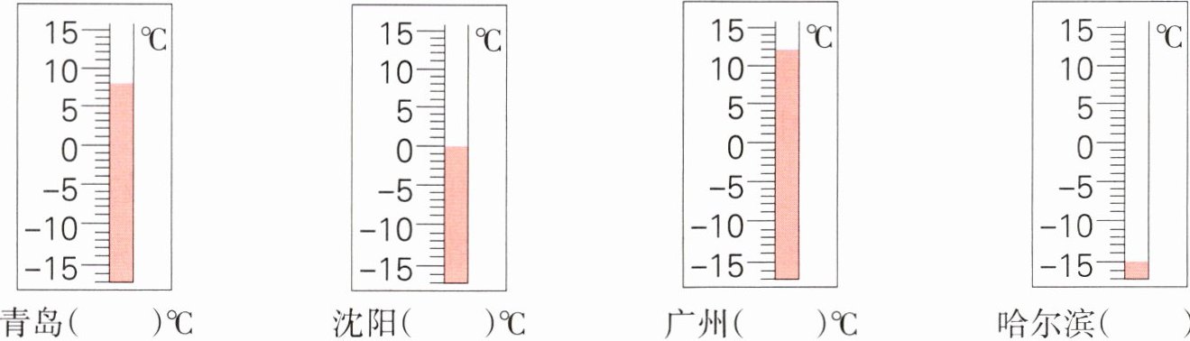 1. [教材改编]同一时期全国各地气温大不相同,根据温度计写出各地同一时期的气温。