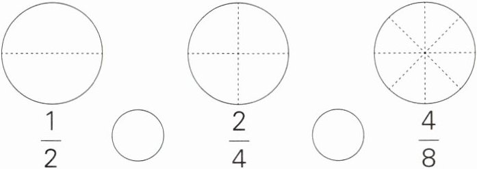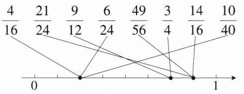 4. 下面的分数中哪几个可以用同一个点表示? 把分数和相应的点连起来。