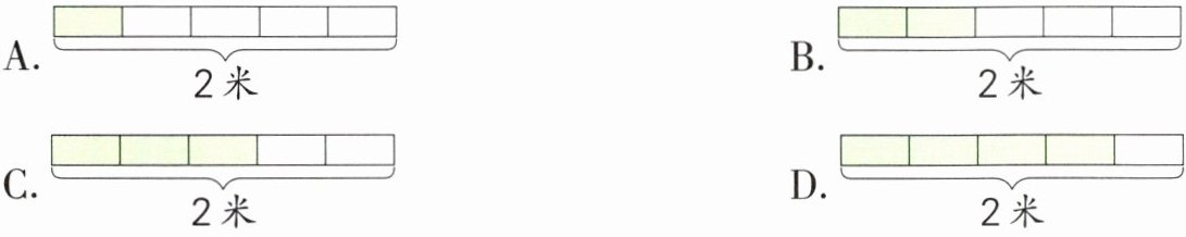(1)(滨州沾化区期末)图中阴影部分长度是$\frac{2}{5}$米的是( )。
