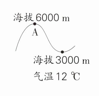 A点比海拔3000 m处的气温低18℃,是-6℃。